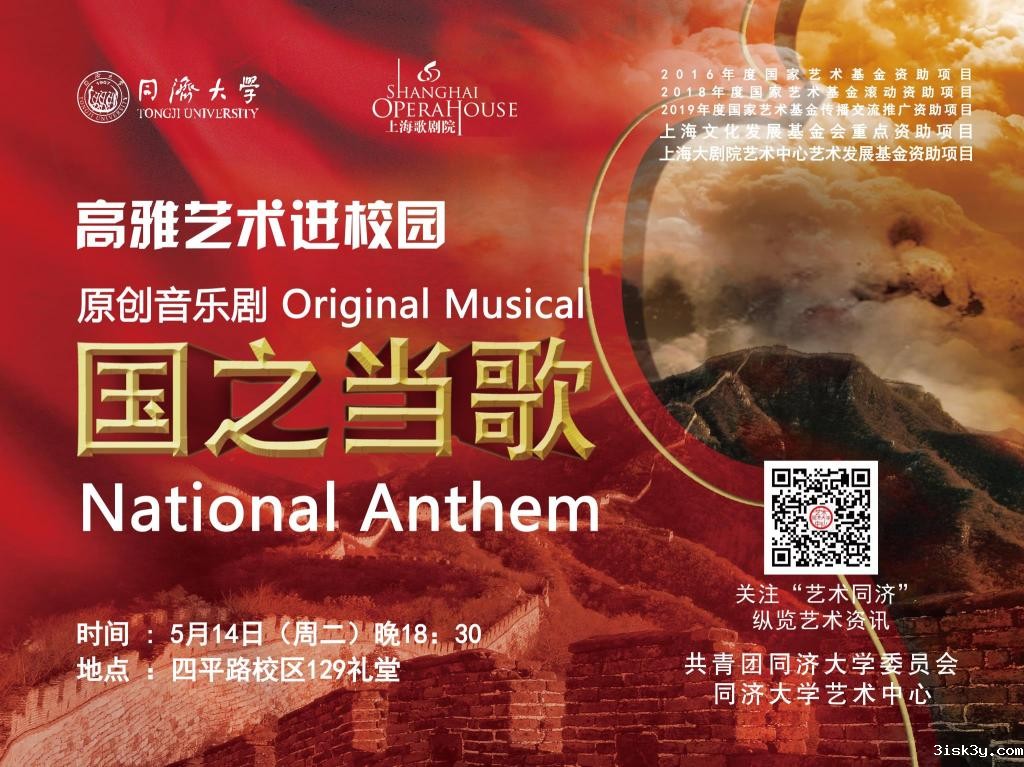 为了纪念中华人民共和国成立70周年、五四运动100周年,学习贯彻习近平新时代中国特色社会主义思想,丰富校园文化生活,高雅艺术进校园上海歌剧院音乐剧《国之当歌》将在我校上演。