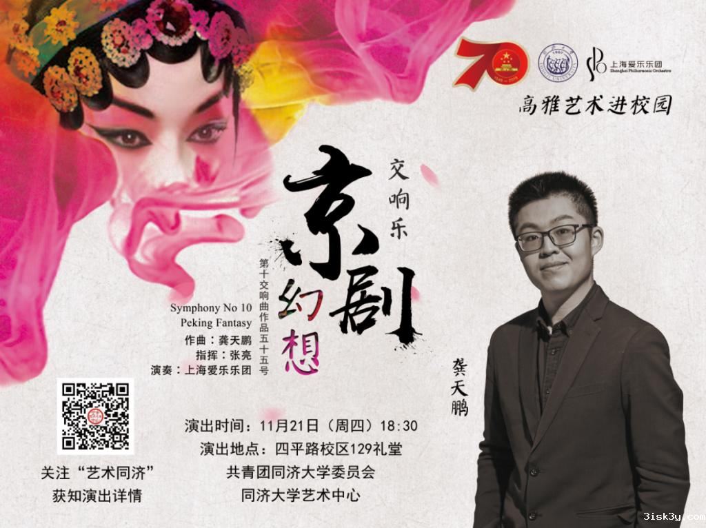 为庆祝新中国成立70周年,弘扬社会主义核心价值观和中华传统文化,丰富校园文化生活,高雅艺术进校园系列活动上海爱乐乐团交响乐《京剧幻想》将在我校四平路校区上演。