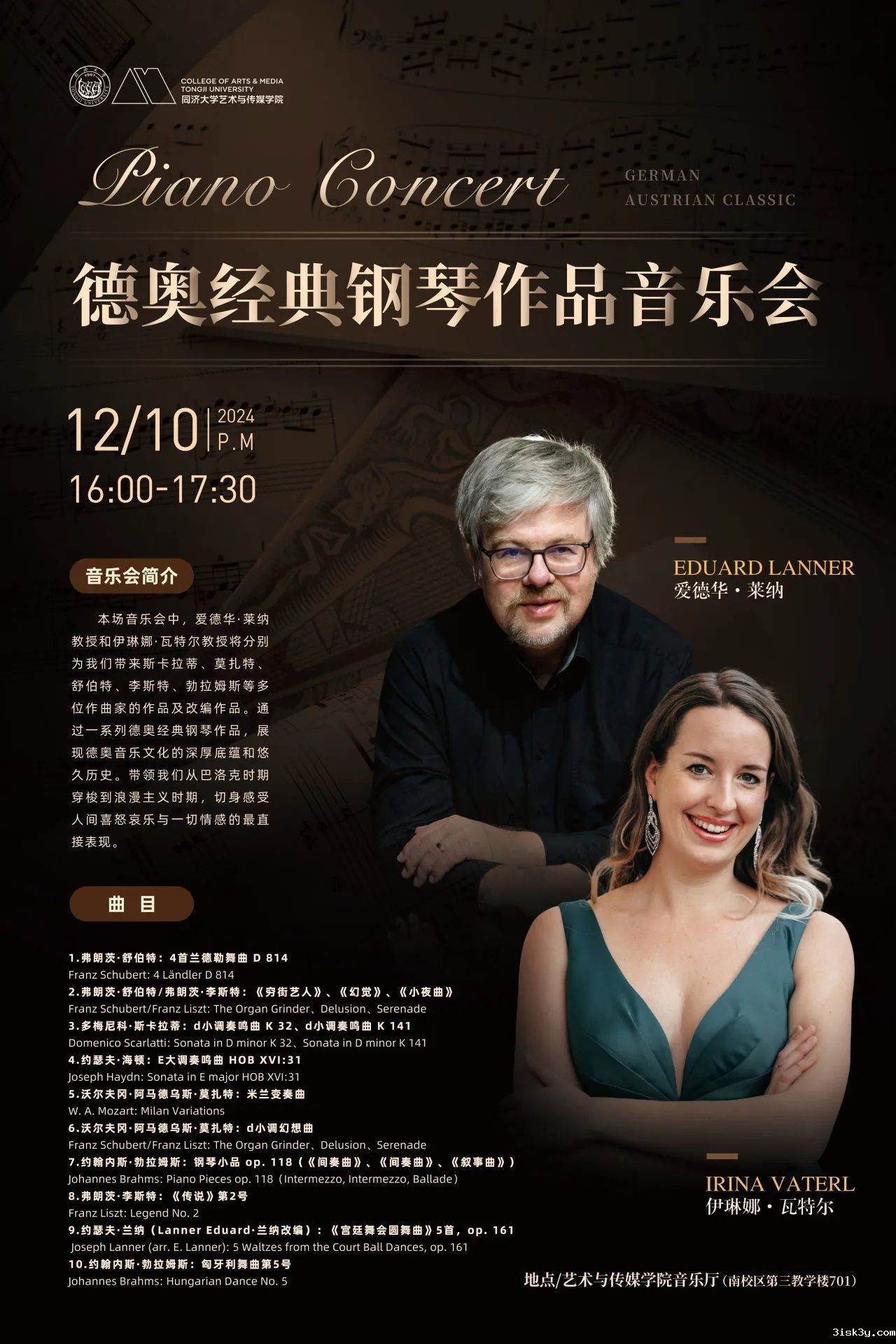 音乐表演专业大师课|德奥经典钢琴作品音乐会节目预告