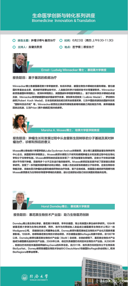 2、报告题目:肿瘤生长和发展过程中从血管新生到转移的分子基础及其对肿瘤治疗,诊断和预后的意义