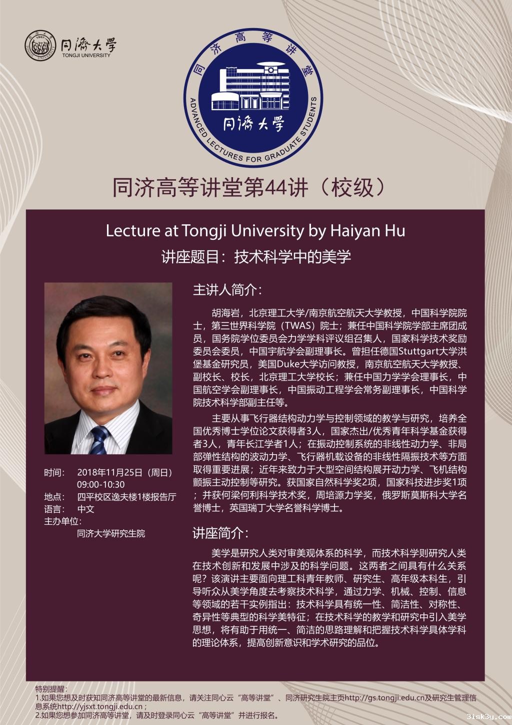 (11月25日)同济高等讲堂第 44讲(校级)Lecture at Tongji University by Haiyan Hu