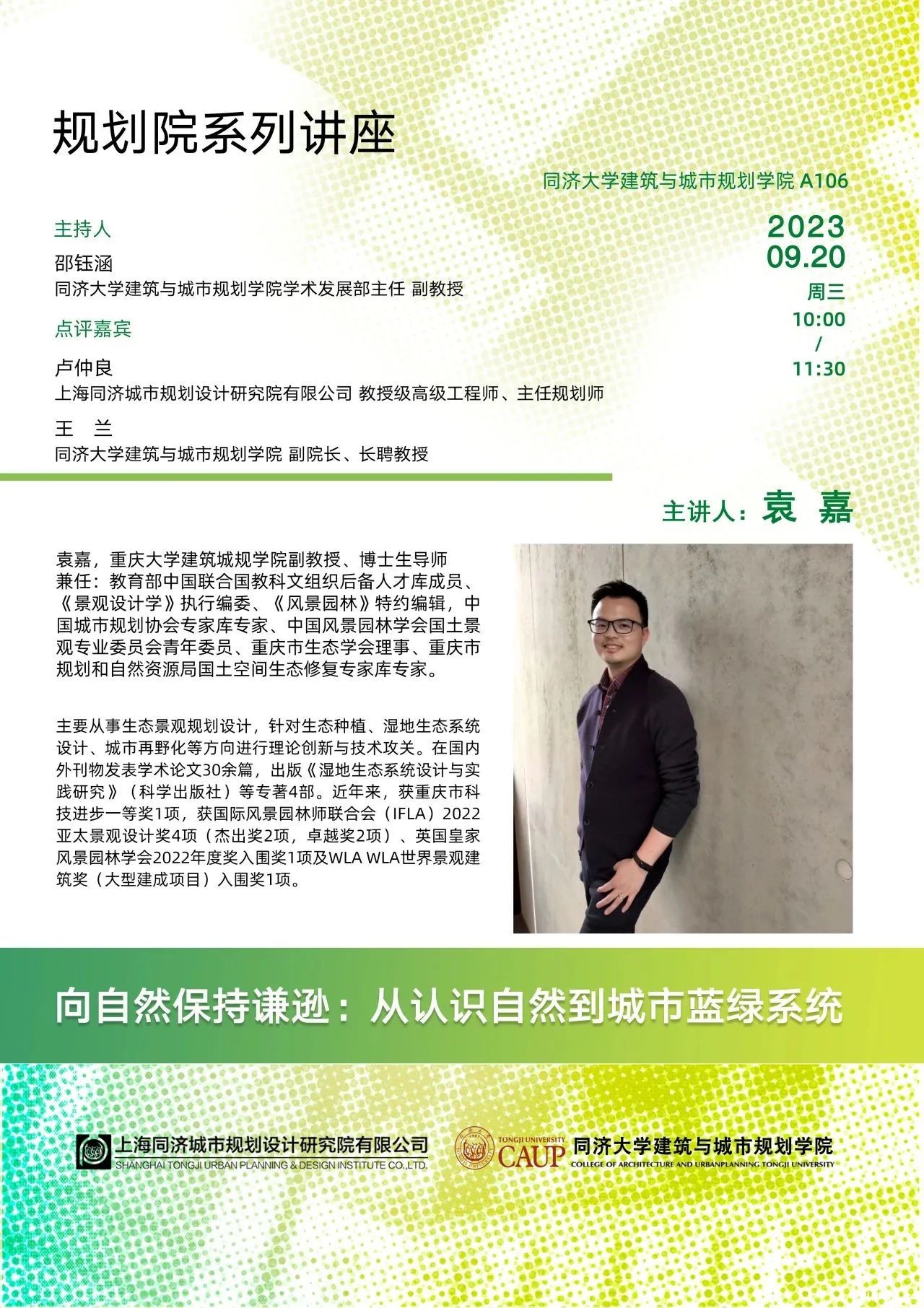 (9月20日)向自然保持谦逊:从认识自然到城市蓝绿系统