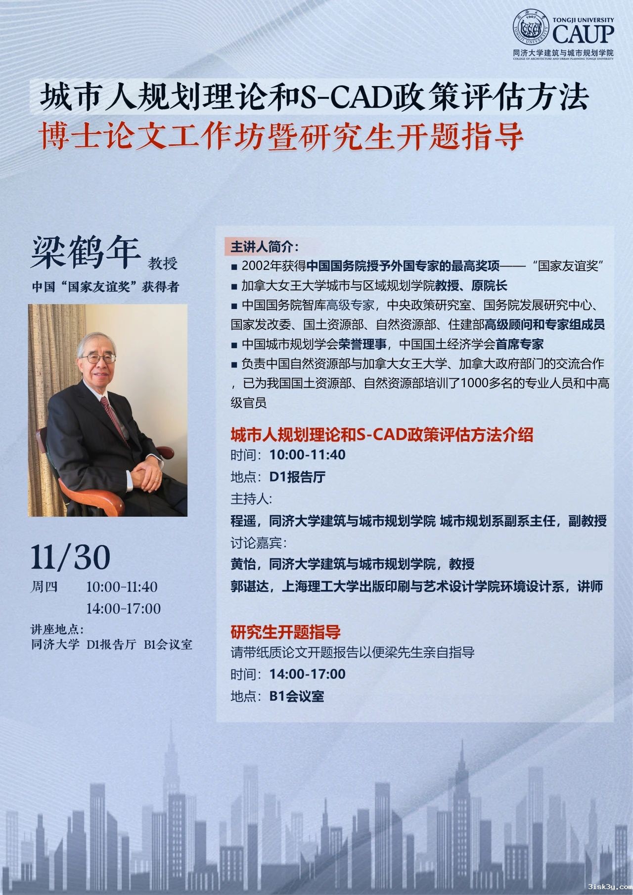 (11月30日)城市人规划理论和S-CAD政策评估方法:博士论文工作坊暨研究生开题指导