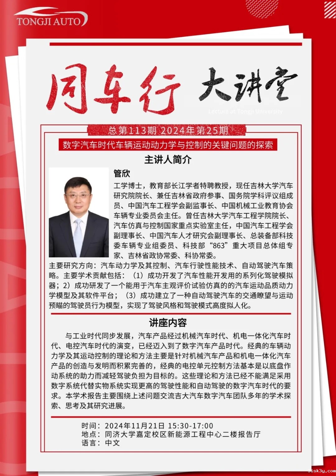 (11月21日)数字汽车时代车辆运动动力学与控制的关键问题的探索