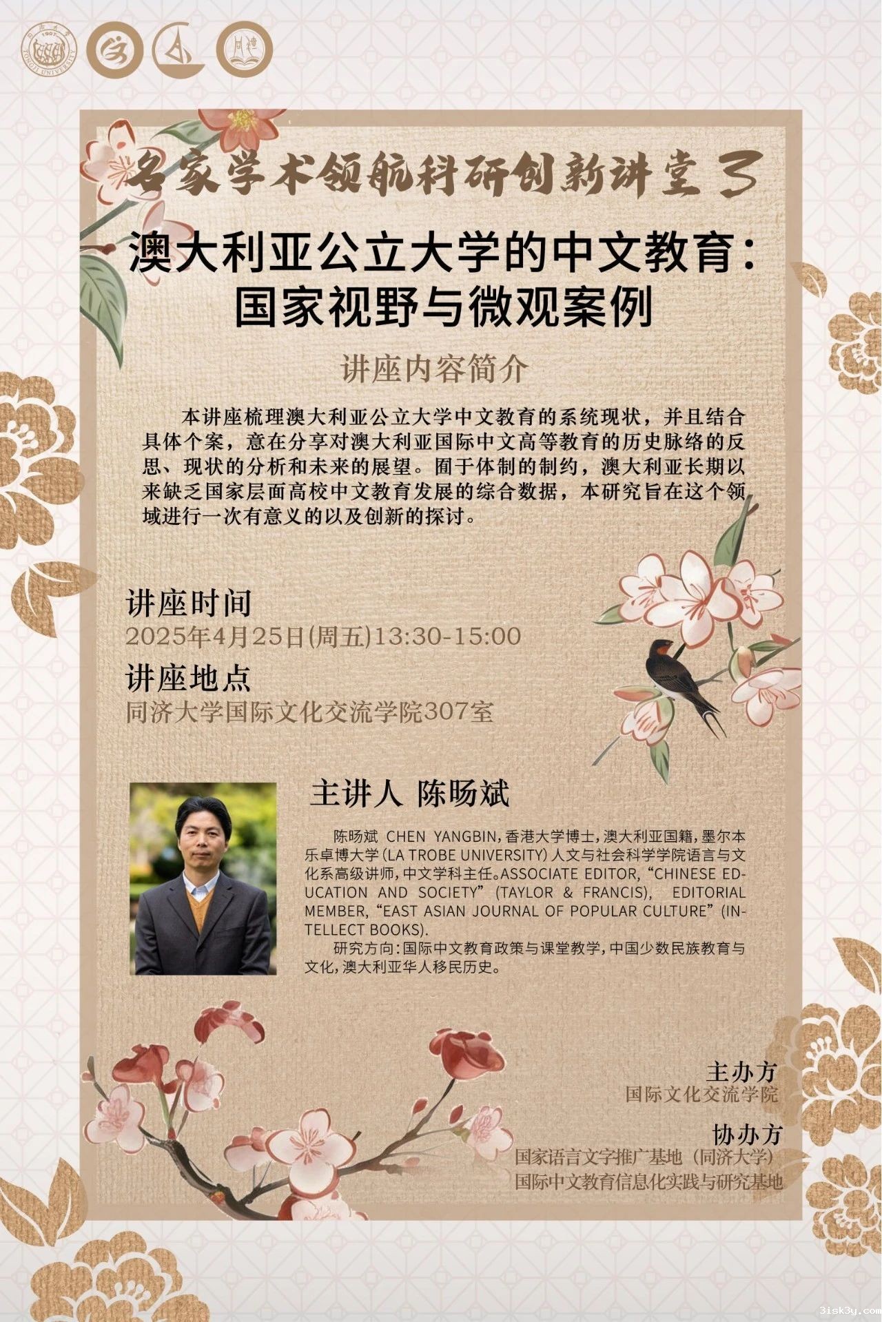 (4月25日)澳大利亚公立大学的中文教育:国家视野与微观案例