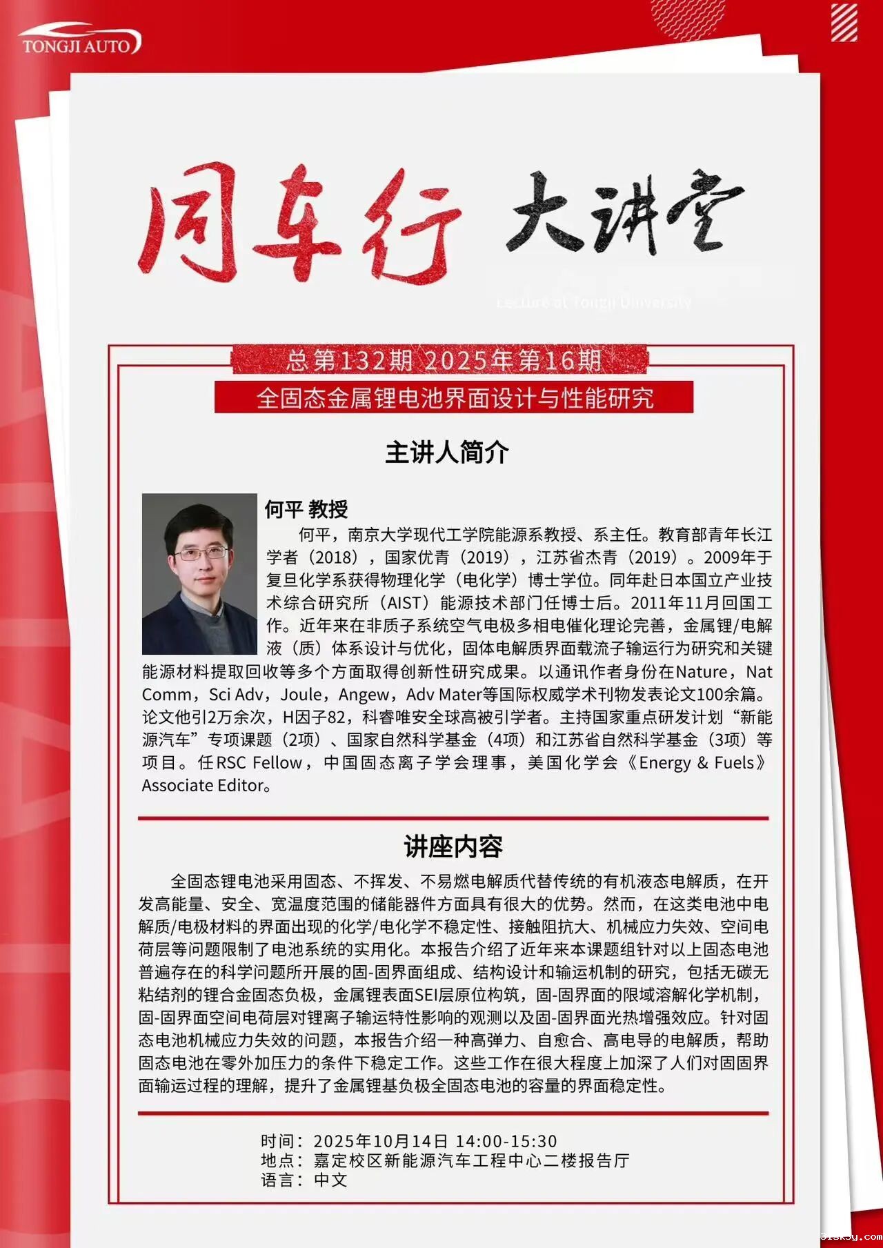 (10月14日)全固态金属锂电池界面设计与性能研究