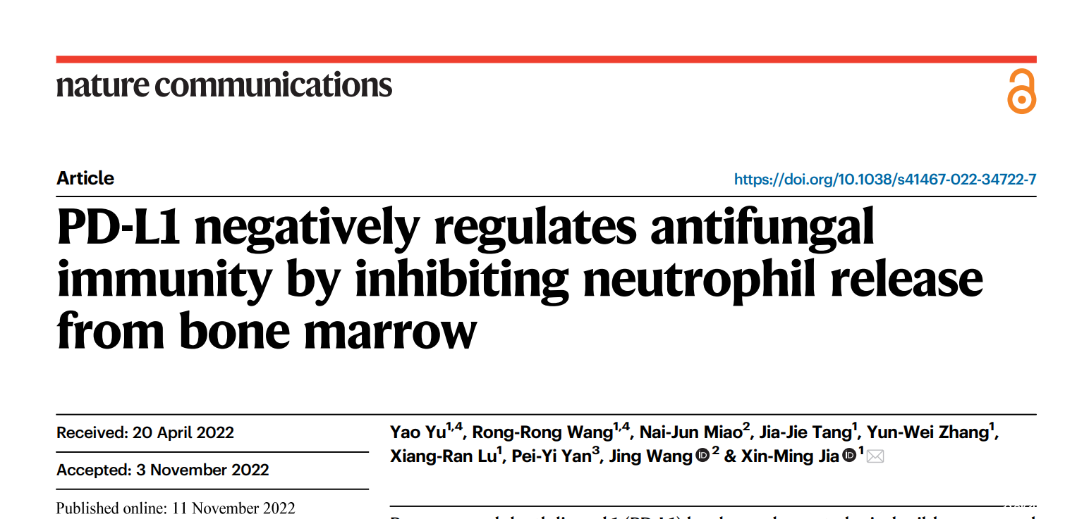贾鑫明团队揭示PD-L1负调控抗真菌免疫的新机制,相关研究成果发表于《自...