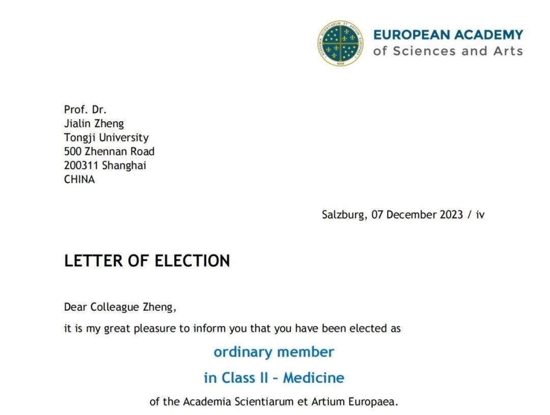 医学院郑加麟教授当选欧洲科学与艺术院院士