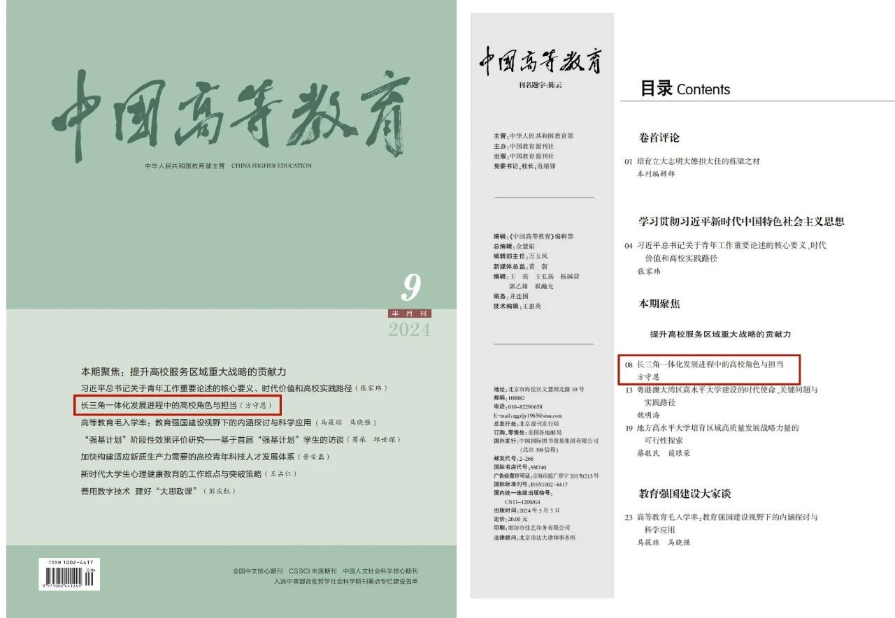 在最新一期的《中国高等教育》杂志上,taptap网页版登录kino党委书记方守恩的署名文章刊发于该刊该期聚焦的专题“提升高校服务区域重大战略的贡献力”,并获封面推荐,文章题为《长三角一体化发展进程中的高校角色与担当》。...
