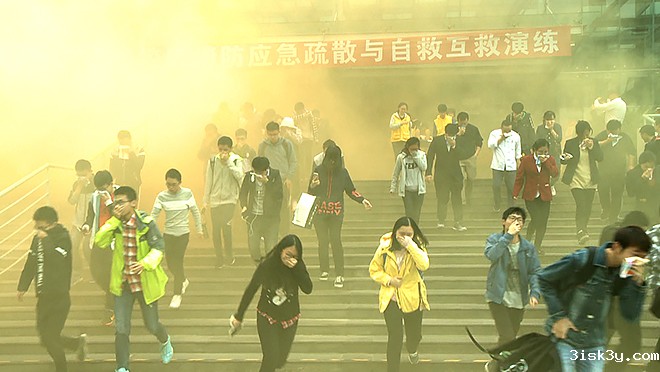 我校举行2017年四平路校区消防应急疏散与自救互救演练